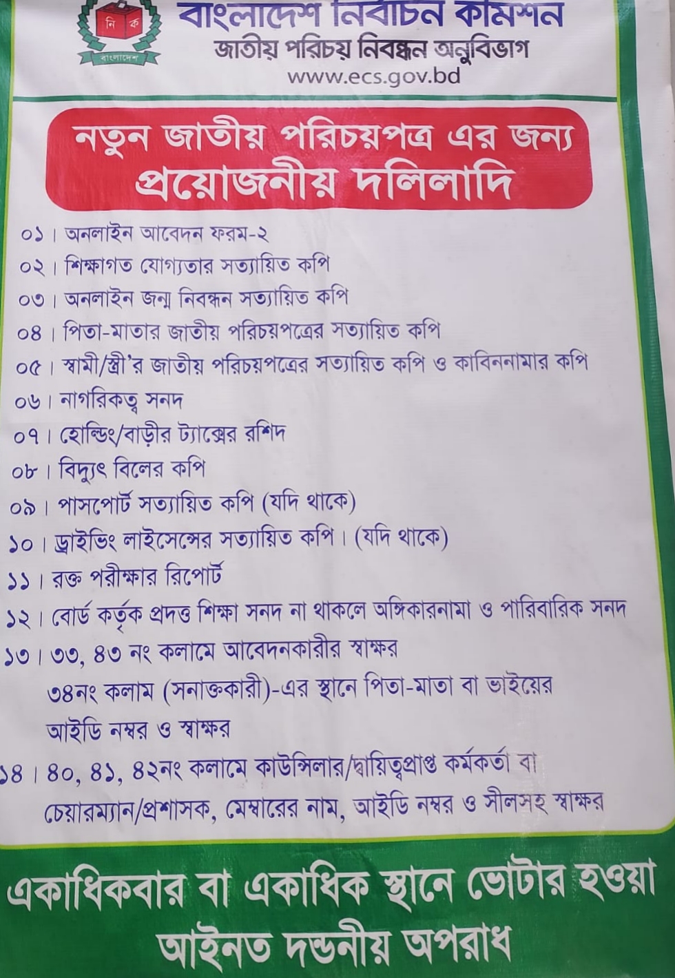 | ১ | নতুন ভোটার নিবন্ধনে প্রয়োজনীয় দলিলাদি | | ১৯-০২-২০২৬ | দেখুন | |